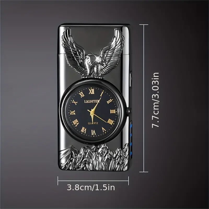 1pc Double Arc Lighter Embossed Eagle Cool Real Dial LED Lighting Charging Igniter