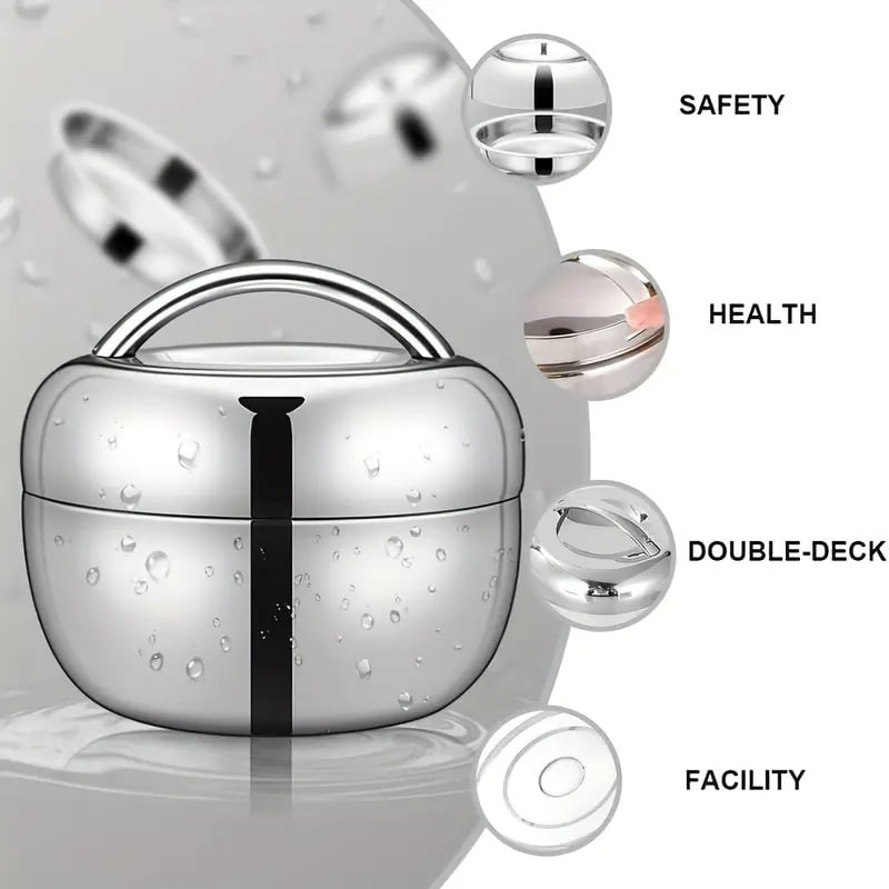 1pc Hot Food Flask, Portable Stainless Steel Lunch Box, Hot Water Bottle, Vacuum Insulation Double-Layer Bento Box, For back to school, class, college, school supplies, kitchen organizers and storage,