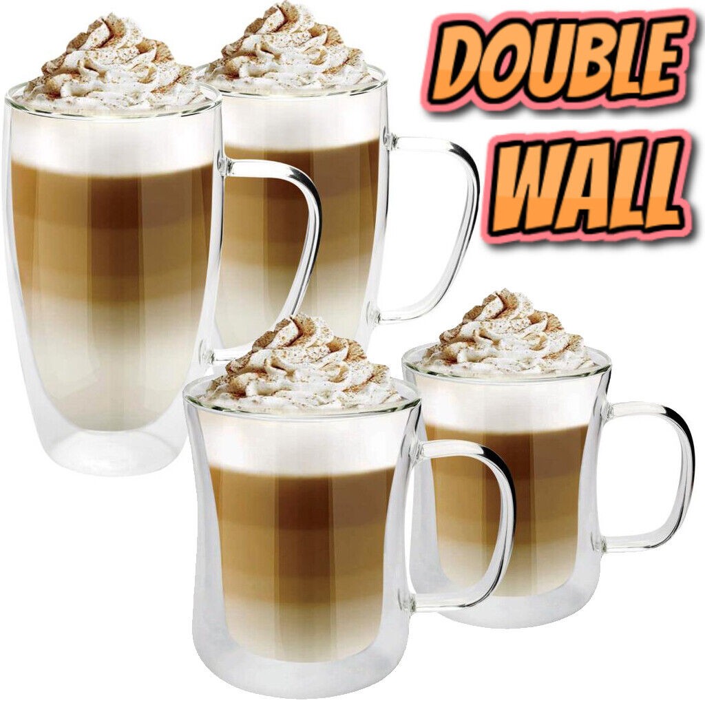 2 X Double Walled Glasses 350ML or 450ML for Latte Coffee Tea Glass Mugs Wall