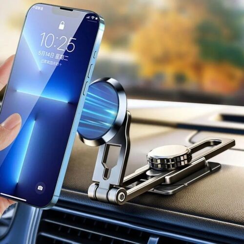 360° Rotation Magnetic Phone Holder Foldable Car Mount Stand Dashboard black