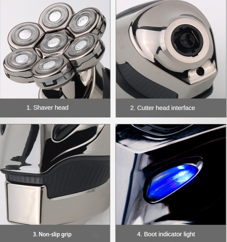 This electric shaver adopts 7D floating shaving head design, which has increased contact area compared to other heads. The center has undergone a broader transformation design. The concave center blade of the razor can increase the curvature of the razor and conform to the skin contour more closely, giving you an efficient and relaxed shaving experience.