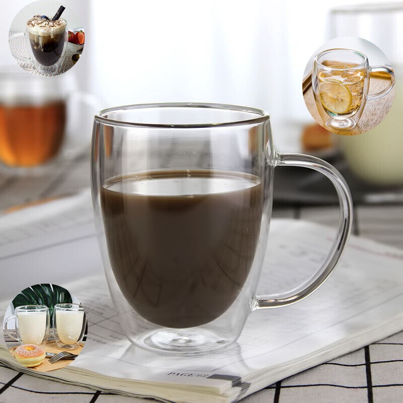 Coffee Glass Double Wall Insulated Glass Mug Tea Cup with Handle 150/250/350/450