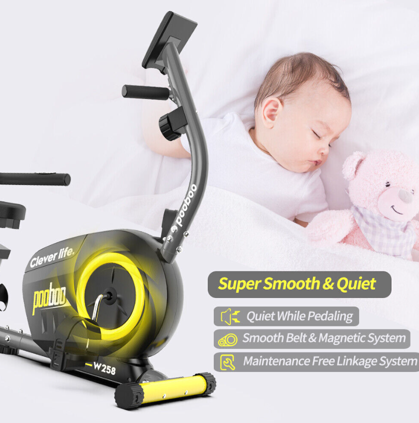 • ?Super Quiet & Smooth 8 Level Magnetic Resistance? Merely no maintenance required. Magnetic needs no brake pad, belt drive system can give you an unbelievably smooth and quiet ride. The rotary tension knob is convenient to customize your workout levels.