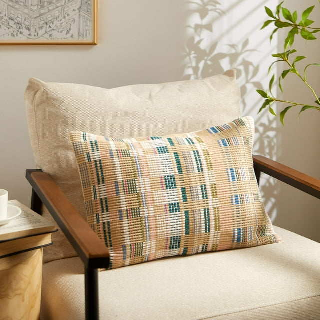 Mainstays 100% Cotton Woven Oblong Decorative Pillow, Multi-Color, 14" x 20"