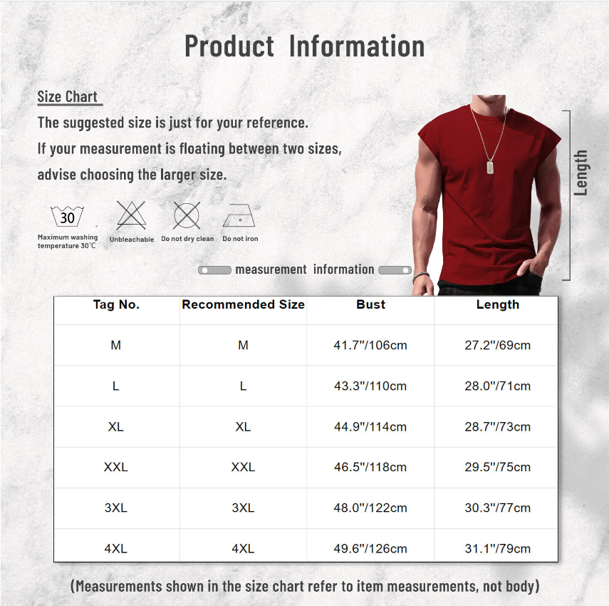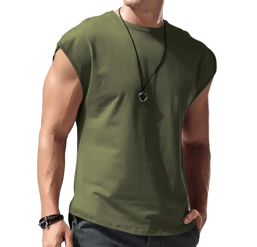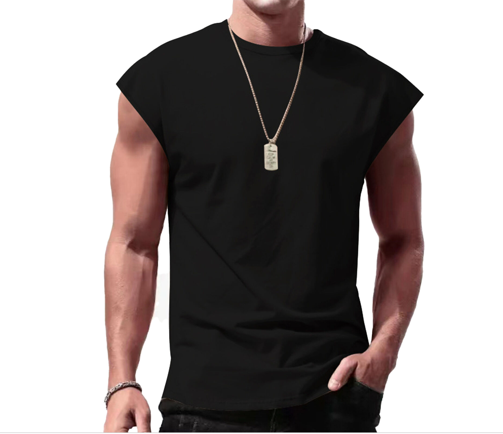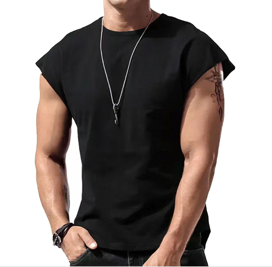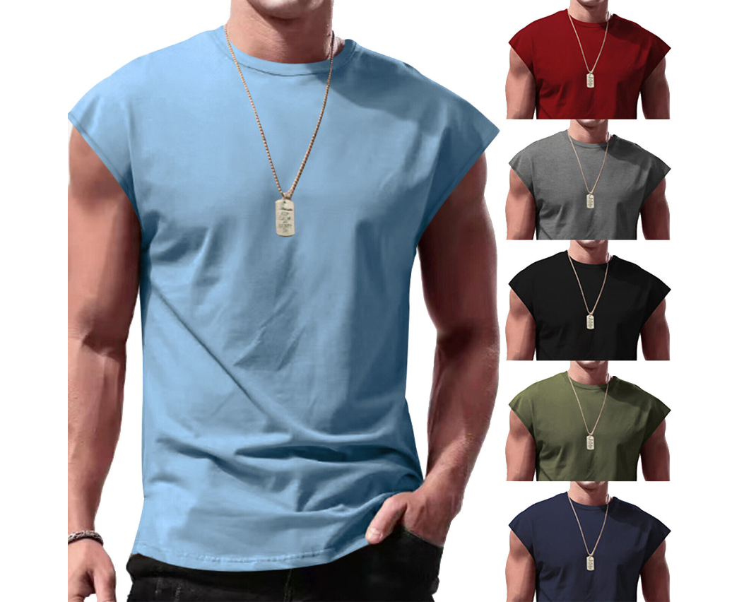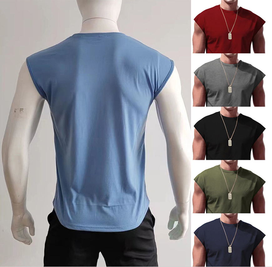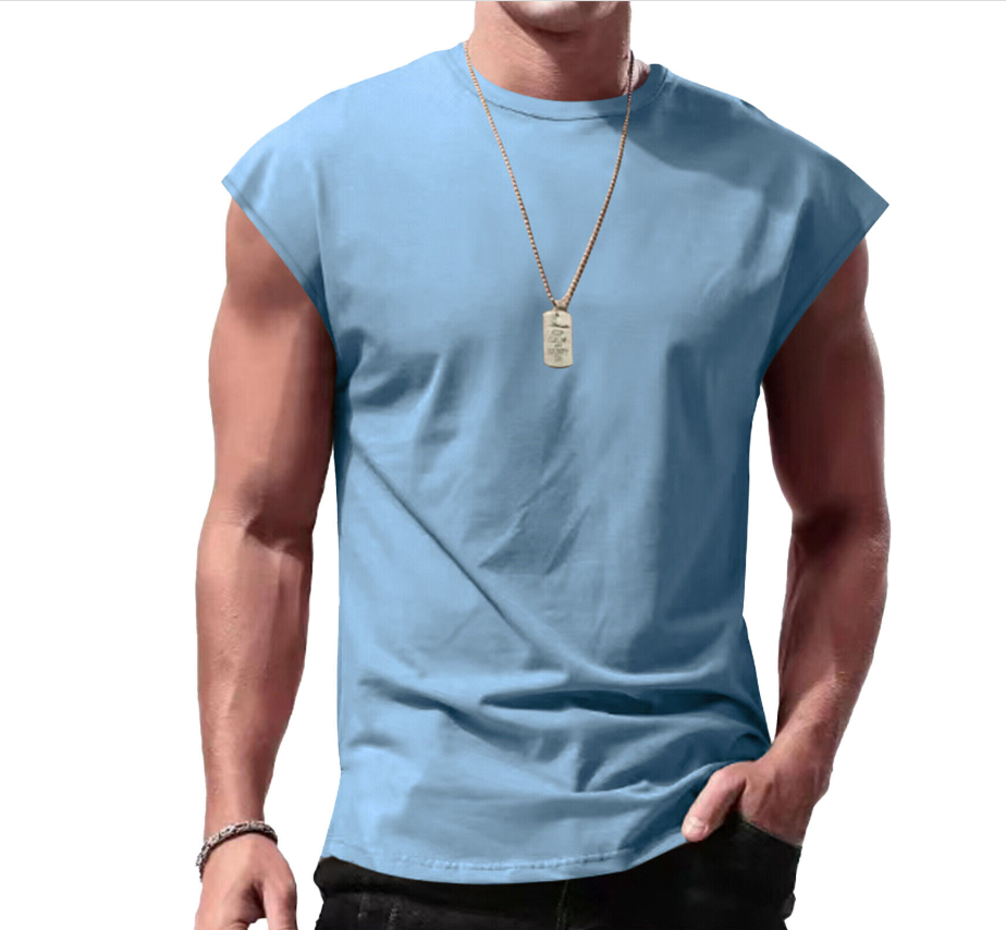 The solid color for this men’s round neck t-shirt is simple but not boring, sleeveless, perfect for showing your arm muscles.