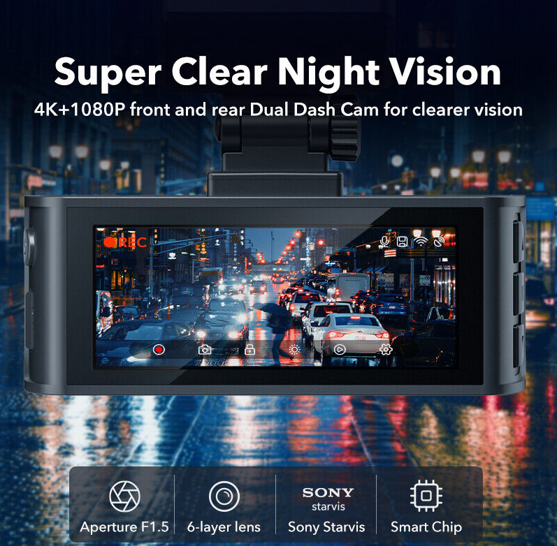 [Super Clear Night Vision] The equipped high-spec Starvis Sensor significantly improves light sensitivity of the camera. With the combination of f/1.5 large aperture, 6-glass lens and WDR & HDR technology, the dashcam is able to capture clear images at night or in any low-light environment.