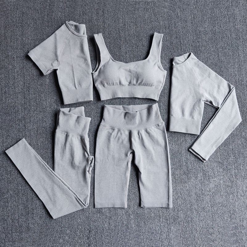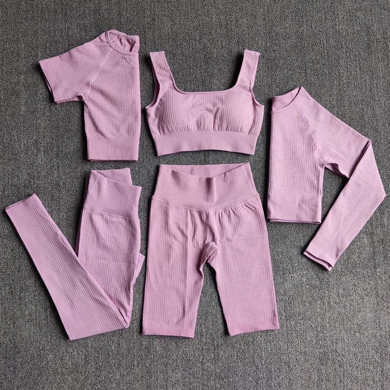 Seamless Women Yoga Set Workout Athletic Solid Gym Legging Fitness Bra Crop Tops