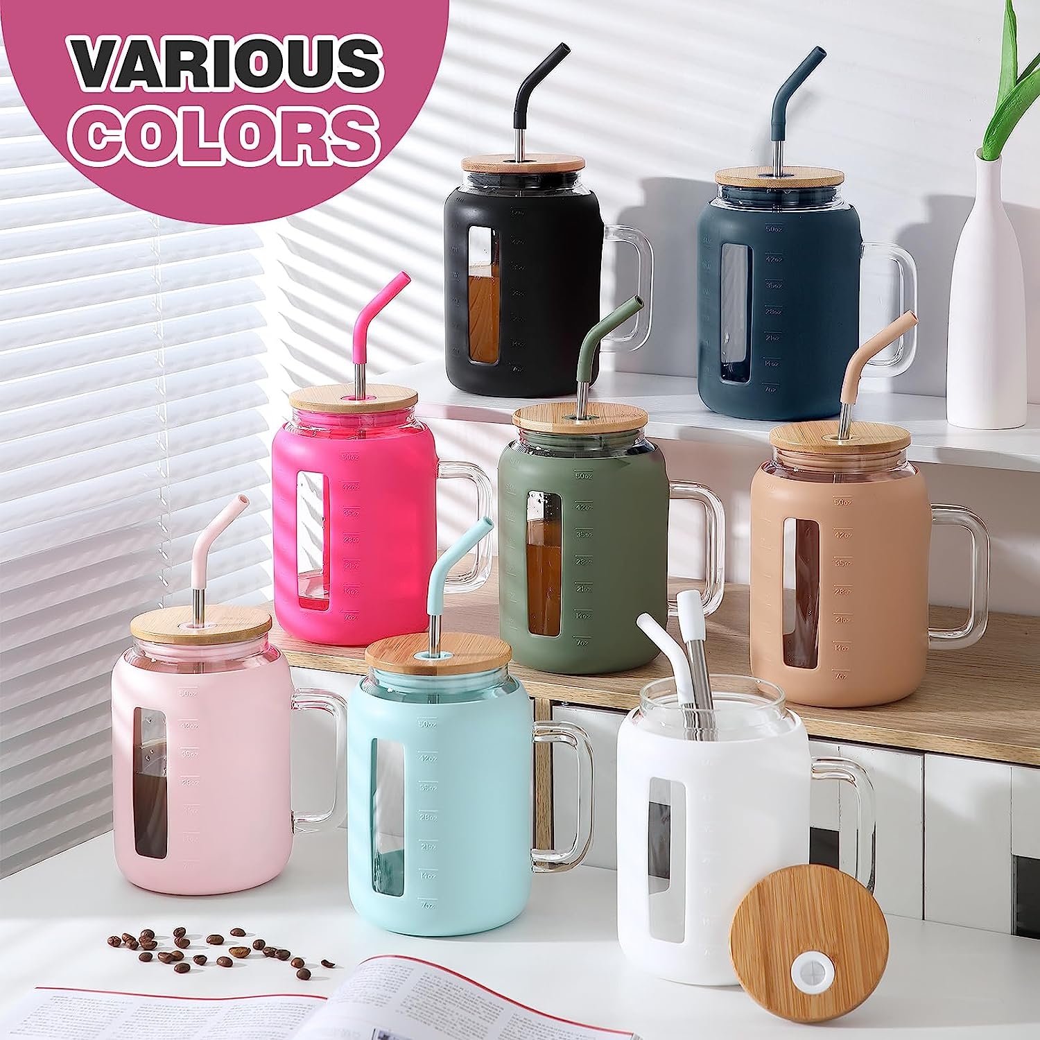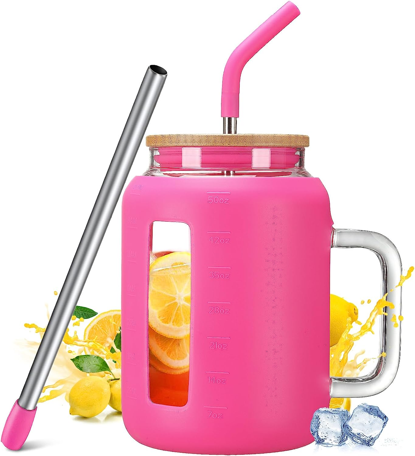 Tumbler with Lid and Straw 50 Oz Mug Tumbler with Handle Giant Glass ...