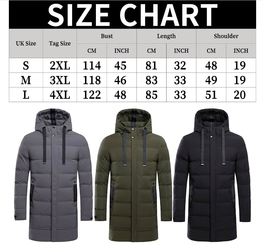 Feature: 100% Brand new and high quality Size: UK S/M/L Gender: men Color: Black, Green, Grey Material: polyester Neckline: hooded Length: mid-length Season: winter Occasion: everyday Garment:Hand washing or machine washing,line dry.