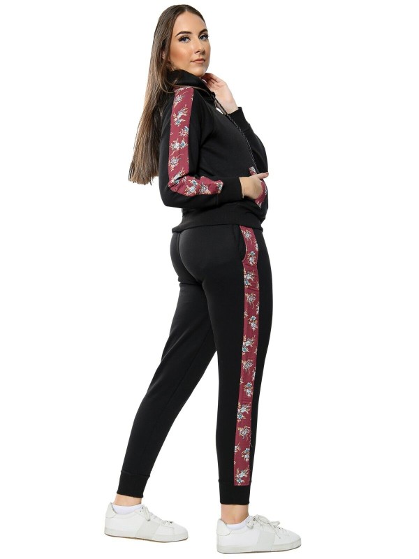 Fleece, Hooded, Floral Side Panel, Windproof, Elastic Waist, Comfort, Sports, Drawstring, Stretch, Thermal, Sport Suit, Moisture Wicking, Side Stripe, Pockets, Lightweight, Lounge Suit, Zipper, Jogging Pants