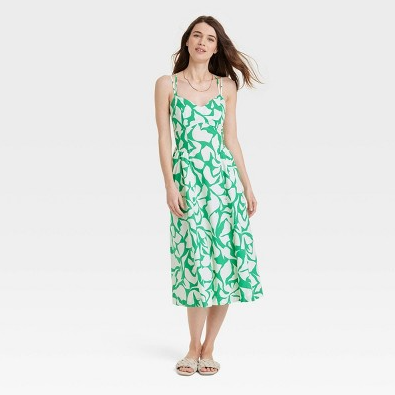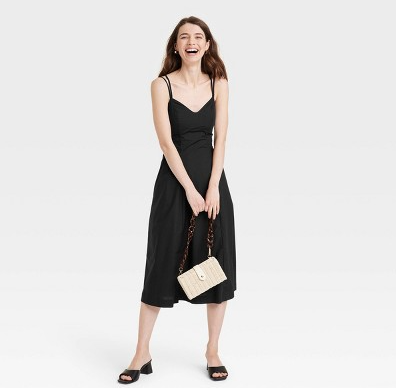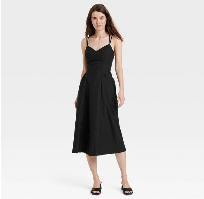 This Sleeveless Dress from A New Day will be your fave go-to pick for parties and casual catch-ups with friends. This midi dress gives you a flattering look thanks to its sweetheart neckline, a corset-style waist with princess darts, a smocked panel at the back, and twin spaghetti straps that make a crisscross design at the back and feature buckles for a customizable fit. Designed with strategic gathers at the waist and functional pockets on the sides, this pullover dress is made of 100% cotton to keep you comfortable all day.