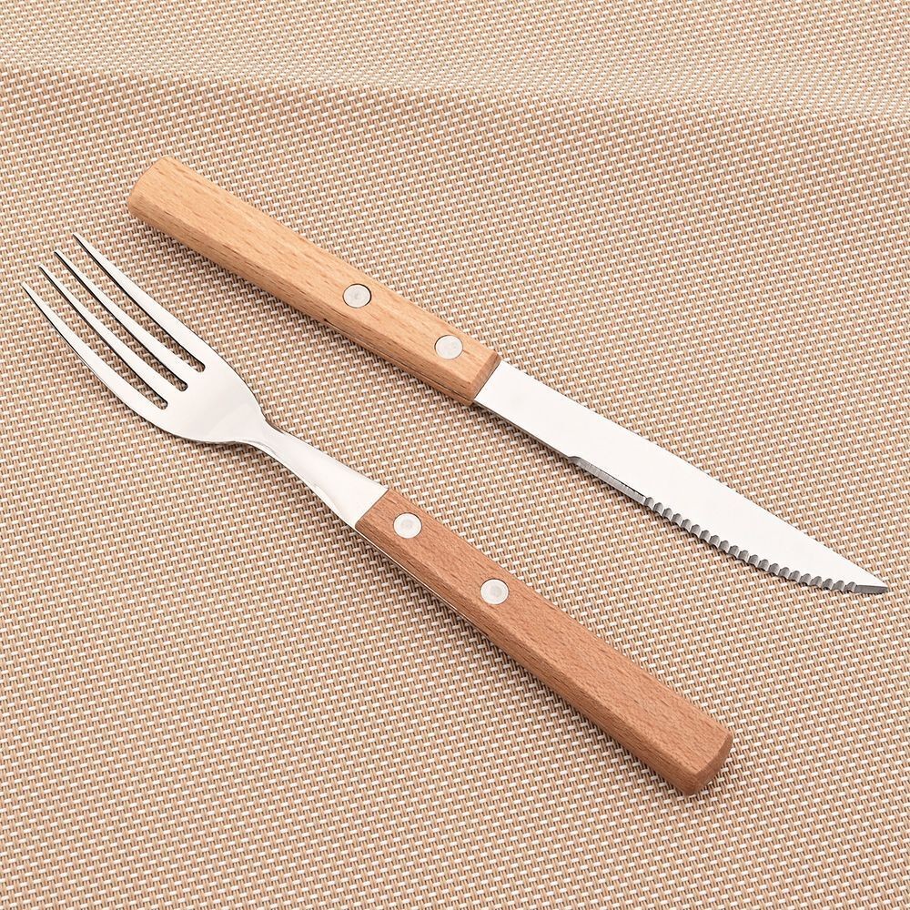 Wooden Handle Cutlery Tableware Stainless Steel Knife Fork Spoon Dinnerware Tool